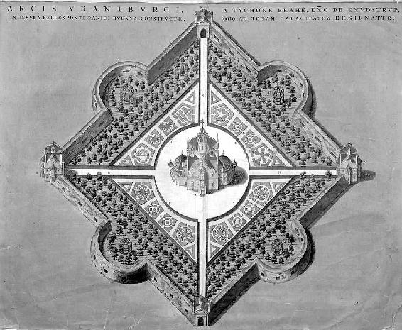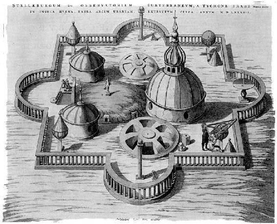 丹麦天文学家蒂丘·布拉赫在哥本哈根外海的赫维恩岛建立了一座天堂城,设有好几座天文台