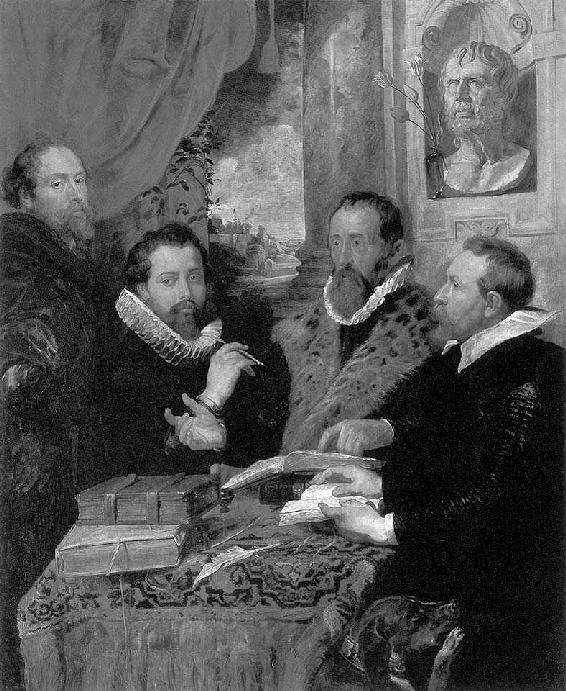 鲁本斯的《四哲人》(The Four Philosophers)。17世纪的哲学家不再讨论教宗的权威,他们开始辩论上帝的存在