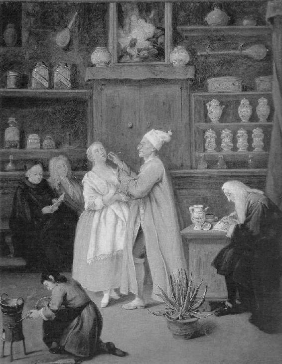 牙医正在给一位女子检查牙齿。17世纪之前,看牙齿还是理发师的事