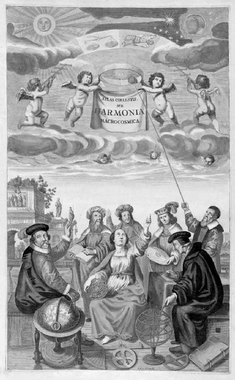 1660年版的《和谐大宇宙》的扉页上的天文学家