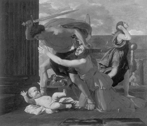 《屠杀婴儿》(The Massacre of the Innocents)(普桑Nicolas Poussin,1630—1631)。这幅画具有比较深刻的道德意义,是对惨烈的三十年战争的反映