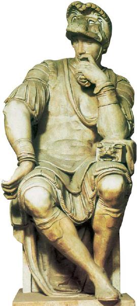 这是米开朗琪罗为美第奇家族的洛伦佐所制作的雕像。由于美第奇家族的赞助和支持,意大利的文艺复兴取得了辉煌的成就。