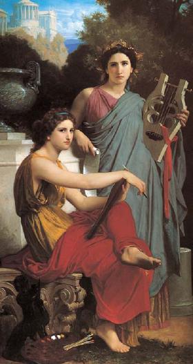 这是象征文学与艺术的两个女神。文学和艺术一样,都是对感受的表达,并将表达的感受传达出去。