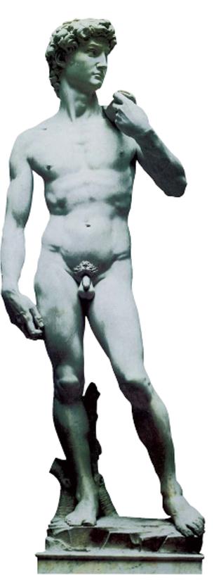 三年之后,一个身高5.5米,左手紧握投石机、右手执石、目光怒视的英雄大卫形象昂然挺立在人们眼前。他身体线条匀称,肌肉结实有力,上肢粗壮而富有青春气息,紧张的神情仿佛已经身临战争之境,这个年轻的战士浑身散发出的坚定和无畏让人感受到一种依靠自身力量战胜敌人、一种来自人民的正义与力量保卫祖国不受侵犯的信心,透过大卫雄健的身躯还可以看到来自古罗马雕塑的完美与真实,超凡脱俗的感染力让每一个看过雕塑的人终身难忘。米开朗琪罗的战斗激情、爱国情绪找到了最佳的发挥途径,也让自己出神入化的精湛技艺得到了世人的认可,佛罗伦萨人民充分感受到了蕴含其中的奋进情愫,那种从内而外的鼓舞力量成为佛罗伦萨人民的精神象征。为此,政府专门组建了一个委员会,邀请到达·芬奇、波提切利等人前来讨论如何妥善将其安放。最后这座伟大的雕像被矗立在市政厅大门之前,随着一场隆重的揭幕仪式,佛罗伦萨举城沸腾,狂欢的市民终于有了代表着佛罗伦萨政治理想的保护神。