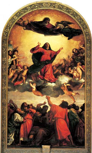 此时是1510年,这一时间是提香创作生涯的早期。他的作品包括《吉卜赛圣母》、《莎乐美》、《梳妆的女子》、《花神》、《音乐会》、《三种年龄》、《美狄亚和维纳斯》、《圣母升天》等等。其中最为有名的当属《圣母升天》,这是他为威尼斯弗拉里教堂的祭坛创作的。画面内容展现的是《圣经》中圣母升天的故事,画面中央是圣母被天使簇拥,自由飞起,神情自信而充满昂扬之气。画面通过巧妙的构图,形成一种中央视觉上的汇聚,增加了感染力。画面底部众多的使徒欢呼庆祝,面容充满喜悦与惊奇,他们矫健的身形源于生活中的人们,一个个被喜气洋洋的乐观氛围笼罩。画面上方是上帝和天使在热烈的表情中迎接圣母的到来。这幅画作一方面通过新颖的构图和大胆创新的内容展示方式营造了一种磅礴的大气,另一方面将生活中的人物和感情融入画中,人物和环境都取材自熟悉的原型,原本严肃而压抑的宗教作品,在这里变得春光洋溢,平易近人。这幅画作使提香赢得了很高的声誉,也预示着新的成就即将诞生。