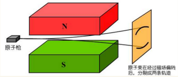 实验的原理很简单:电子绕着原子核运行,就相当于一个微弱的闭合电流,会产生一个微小的磁矩,这就使得原子在磁场中会发生偏转,其方向和电子运行的方向有关。斯特恩和盖拉赫将一束银原子通过一个非均匀磁场,如果电子的运行方向是随意而连续的,那么原子应该随机地向各个方向偏转才是。然而在实验中,两人发现原子束分成有规律的两束,每一束的强度都是原来的一半!很明显,在空间中的电子只有两个特定的角度可取,在往上偏转的那束原子里,所有的电子都是“上旋”,在往下的那束原子里,则都是“下旋”。除此之外,电子的运行就不存在任何其他的角度了!这个实验不仅从根本上支持了玻尔的定态轨道原子模型,更为后来的“电子自旋”铺平了道路,不过我们在史话的后面会再次提到这个话题,如今暂且按下不表。