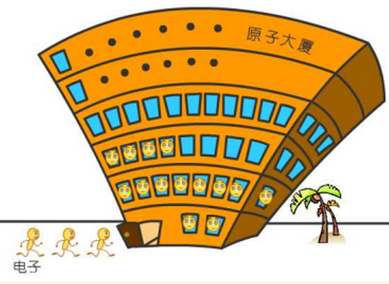 一个原子就像一幢宿舍,每间房间都有一个四位数的门牌号码。底楼只有两间房间,分别是1001和1002。而二楼则有8间房间,门牌分别是2001,2002,2101,2102,2111,2112,2121和2122。越是高层的楼,它的房间数量就越多,租金也越贵。脾气暴躁的管理员泡利在大门口张贴了一张布告,宣布没有两个电子房客可以入住同一间房屋。于是电子们争先恐后地涌入这幢大厦,先到的两位占据了底楼那两个价廉物美的房间,后来者因为底楼已经住满,便不得不退而求其次,开始填充二楼较贵的房间。二楼住满后,又轮到三楼、四楼……一直到租金离谱的六楼、七楼、八楼。不幸住在高处的电子虽然入不敷出,却没有办法,因为楼下的便宜房间都住满了人,没法搬进去。叫苦不迭的他们把泡利那蛮横的规定称作“不相容原理”(Exclusion Priciple)。