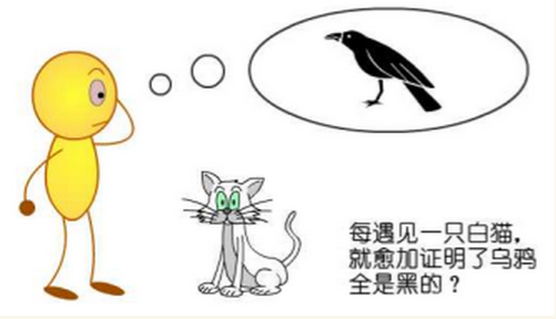 按照归纳主义,我们从过去的现象中归纳出一种规律,而当这个现象一再重复,则它每次都又成为对这个规律的再一次“证实”。比如每次太阳又升起来的时候,“太阳每天从东方升起”这个命题的确定性就被再次稍稍证实。我们每看到一只黑乌鸦,则“乌鸦都是黑的”这个命题的正确性就再次稍稍上升,直到我们遇到一只不黑的乌鸦为止。