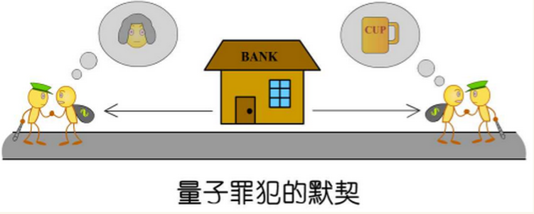 我们这样来想象EPR实验:有两个罪犯抢劫了银行之后从犯罪现场飞也似地逃命,但他们慌不择路,两个人沿着相反的两个方向逃跑,结果于同一时刻在马路的两头被守候的警察分别抓获。现在我们来录取他们的口供,假设警察甲问罪犯A:“你是带头的那个吗?”A的回答无非是“是”,或者“不是”。在马路另一头,如果警察乙问罪犯B同一个问题:“你是带头的那个吗?”那么B的回答必定与A相反,因为大哥只能有1个,不是A带着B就是B带着A。两个警察问的问题在“同一方向”上,知道了A的答案,就等于知道了B的答案,他们的答案,100%地不同,协作率100%。在这点上,无论是经典世界还是量子世界都是一样的。
