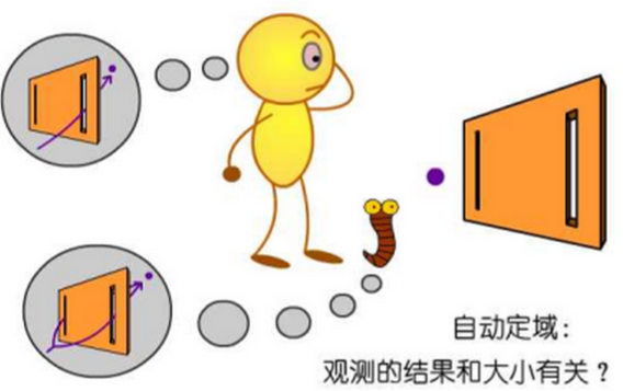 推而广之,因为我们长着一个大脑袋,所以不管我们看什么,都不会出现位置模糊的量子现象。要是我们拿复杂的仪器去测量,那么当然,测量的时候对象就马上变得精确了。即使仪器非常简单细小,测量以后对象仍有可能保持在模糊状态,它也会在我们观测结果时因为拥有众多粒子的“大脑”的介入而迅速定域。我们是注定无法直接感觉到任何量子效应了,不知道一个足够小的病毒能否争取到足够长的时间来感觉到“光子又在这里又在那里”的奇妙景象(如果它能够感觉的话)?
