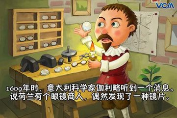 有一天,伽利略听到一个传说:荷兰有一个眼镜商叫利波塞,他的儿子汉斯拿着爸爸作坊里的镜片玩耍,无意之中,举起两个镜片向前一看,远处城堡上的大钟好像跑到了眼前。利波塞从小汉斯的玩耍中得到了启发,造出了一种奇妙的“窥管”。窥管样子像个万花筒,每头安着一块镜片,便能看到远处的景物。这种新奇的玩具引起了很多人的兴趣,在欧洲传开来,一直传到了意大利。