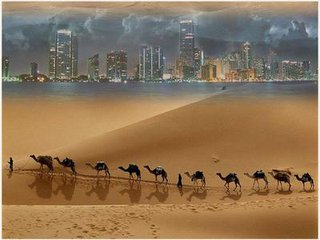海市蜃楼形成的原因,我相信谁都知道吧!在灼热的沙漠里,沙漠的沙就像镜子一般,也就是说和沙漠接触的空气层,比上层部的空气密度较小,会产生反作用。所以当远处的物体发出光线倾斜射过来时,就像光线和非常大的日射角,碰到镜子而反射一般,碰到密度小的空气层之后,就在空气层里折射,这种光线就跑进了人们的眼睛。因此,在沙漠里旅行的人,常会把眼前的部分实物看成是在广阔水面上的某种幻影。