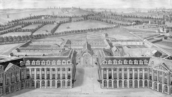 这个街区位于城市的边缘地带。这幅1705年发行的图像(图3)中,可看到广场北边的一排房屋:房屋的后面,是路易十四时期巴黎林荫大道的一段,当时竣工不久。在那后面,是一望无际的田野。在法国濒临破产的时候,这些金融家兴建豪宅,自成一个社区,外有大门紧闭,隔绝当时城市别处弥漫的苦难。