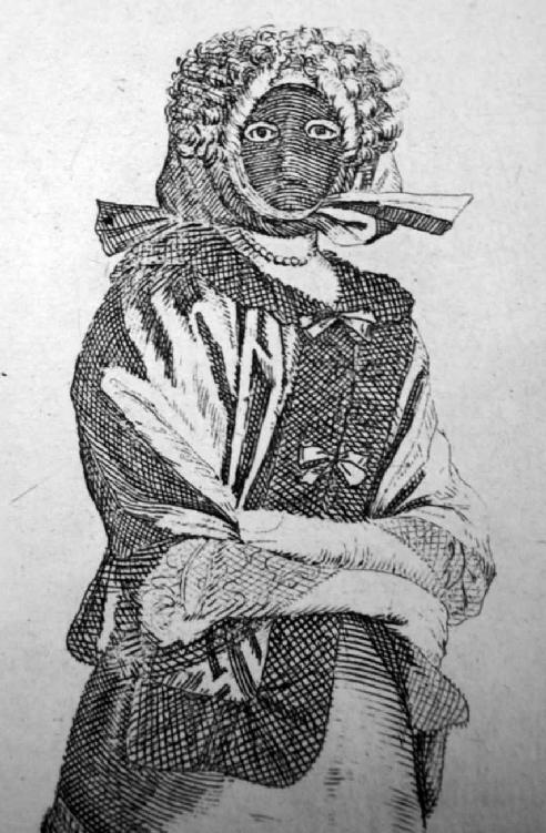 图5 这位女性戴着当时被称为“狼面”的面具,“因为这样可以吓到小孩”