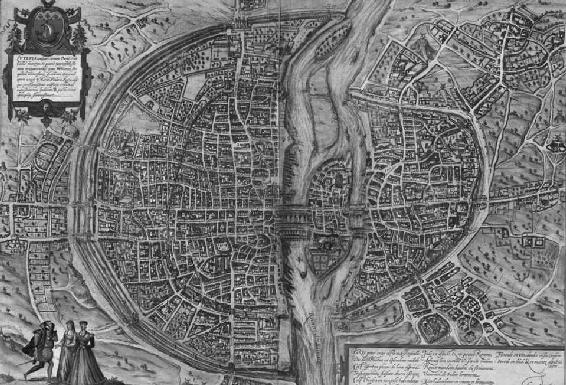 不过,正如布劳恩地图的细节所显示,墙里面的都市布局并无特色可言。1572年的巴黎更像一座杂草丛生的村庄。大多数土地仅仅是轻度开发;大部分地方甚至没有房屋。街道稀少,有的也是曲折而短的小巷道,仅用于相邻区域的通行,大多数居民楼规模不一,开发随意,缺乏特色。当时能够让人相信巴黎是伦敦那样的大都市的,只有两座建筑(巴士底狱和托内勒斯皇宫)和一条著名的大道。布劳恩地图也至关重要,它证明1572年的巴黎尚未获得它的现代身份。