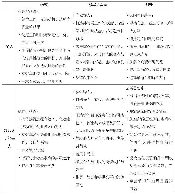 接着我要介绍的是“工作职能表”,表4-1中浓缩了领导人应具备哪些特质才能确保组织可以长久成功。阅读本表时,试着想想自己目前已具备哪些特质?目前正在发展哪些特质?还有哪些特质看起来与自己的工作完全无关?如果你发现表中许多特质都符合你的情况,那么前面所说的那些与领导相关的矛盾很可能就是你每天都必须处理的。