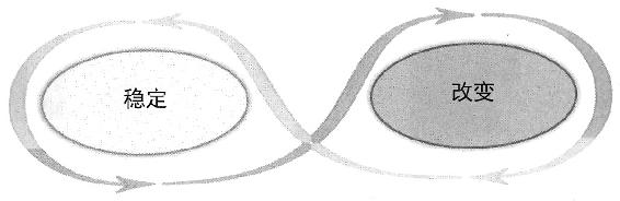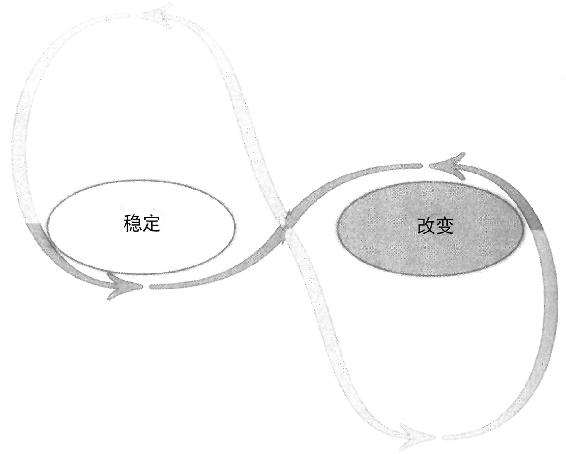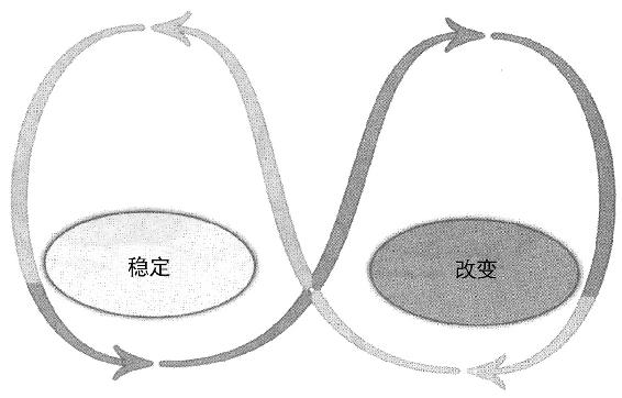 在无穷大的符号里,我们可以放入两个互依的对立概念,并阐述两者间的关系。在这里我们以稳定与改变为例,如图5-3。