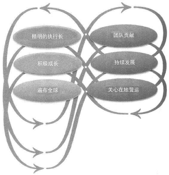 对这家事务所来说,这个矛盾属于文化的一部分,他们将之称为“个人以及合作”。合伙人必须有创业精神才能符合事务所的成长策略所需,但是他们也必须互相合作,才能把握所有交叉销售的良机,扩展客户关系以增加渗透率与留客率。成功管理这个矛盾所要达成的目标是“成长”,失败的结果就是“走向衰亡”。后者也显示出事务所没办法维持现有的稳固表现而成为一家“成熟”企业时的下场。另外一个与目标相关的矛盾便是“短期财务增长以及长期的生存能力”。