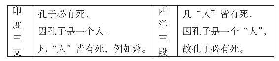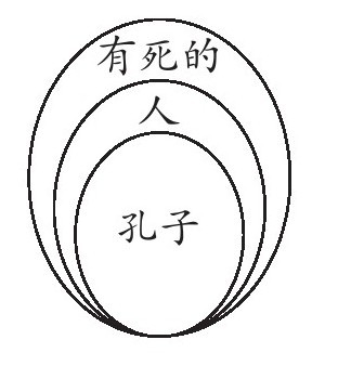 单说一个“所作”之物,如“声”,只可有一部分的知识,即是上文所谓“特者,体也”。若有了“瓶”等“所作”之物为推论的根据,说“瓶是所作,瓶是无常;声是所作,声亦无常”。这虽是“类推”(Analogy)的式子,已含有“归纳”(Induction)的性质,故可作全称的辞道:“凡所作者,皆是无常。”这才是统举的知识,即是上文所说的“二者,尽也”。太炎强把“尽”字读为节字(此类推法之谬误),以为墨家有三支式的证据,其实是大错的。《墨辩》的“效”,只要能举出“中效的故”,——因明所谓因,西洋逻辑所谓小前提,——已够了,正不必有三支式。何以不必说出“大前提”呢?因为大前提的意思,已包含在小前提之中。如说“孔子必有死,因孔子是人”。我所以能提出“人”字作小前提,只为我心中已含有“凡人皆有死”的大前提。换言之,大前提的作用,不过是要说明小前提所提出的“人”,乃是介于“孔子”与“有死的”两个名词之间的“中词”。但是我若不先承认“人”是“孔子”与“有死的”两者之间的“中词”,我决不说“因孔子是人”的小前提了。故大前提尽可省去(古因明之五分作法也没有大前提)。