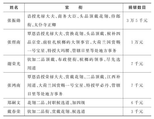 表1 1906年极乐寺功德碑有官衔者捐银一览表