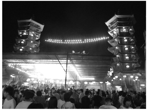 图3 雪兰莪安邦南天宫神诞夜景(陈爱梅摄于安邦,2009年10月18日)