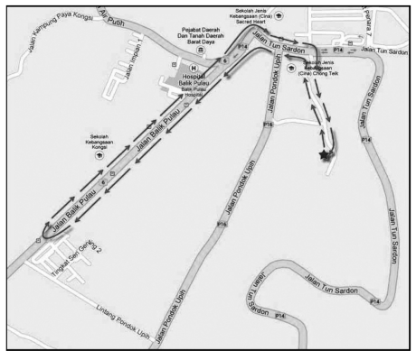 虽然是内陆山区,但是福灵坛九皇诞也有自己的变通。和乔治市靠海的九皇神诞皆是海边迎送多有不同,[24]这里受到地理环境的限制,就只好山里请,山里送了。2008年10月6日,浮罗福灵坛数百名善信冒着细雨护送九皇爷回銮。众善信周二晚从该坛出发,护送九皇爷皇船绕市镇游行后,再护送皇船至浮罗半山景点区恭送回銮。皇船在满满的金银纸下焚化,众善信跪下诚心祈福,祈求九皇爷庇护。[25]近几年福灵坛在当地的影响与日俱增,尤其是游神巡境活动达到高潮。2011年10月2日游神时,“乩童针穿嘴巴吸引不少民众目光,逾千浮罗山背信徒也夹道观看,场面热闹”。这一年的游行队伍就获得来自槟岛12间神庙的参与,派出了为数不少的乩童、花车及神辇。游行于晚上8时开始,虽然下起了细雨,但是浇不灭信徒心中的热诚,大家依然沿着原定的游行路线前进。多位善信也以长约10尺的银针穿脸,让民众啧啧称奇。游行队伍环绕浮罗市镇至文丁后,再返回坛前,沿路上逾千信徒驻足围观,纷纷向九皇爷祭祀。[26]2013年的游神路线,选择的是浮罗山背最主要的一条街道,并且经过了浮罗山背医院、西南县土地局、圣心国民型学校、崇德国民型学校等机构,成为福灵坛游神巡境的主要线路。