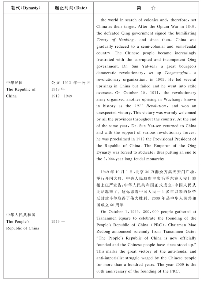 Appendix Ⅲ A Brief Chinese Chronology中国大事年简表