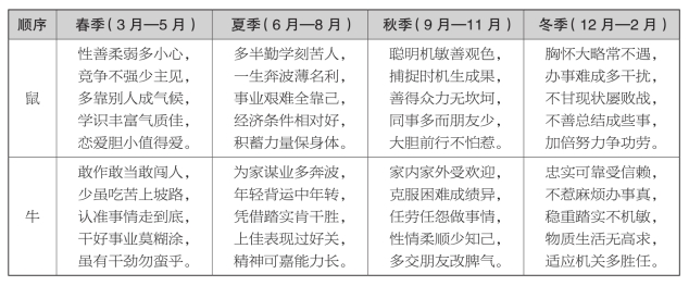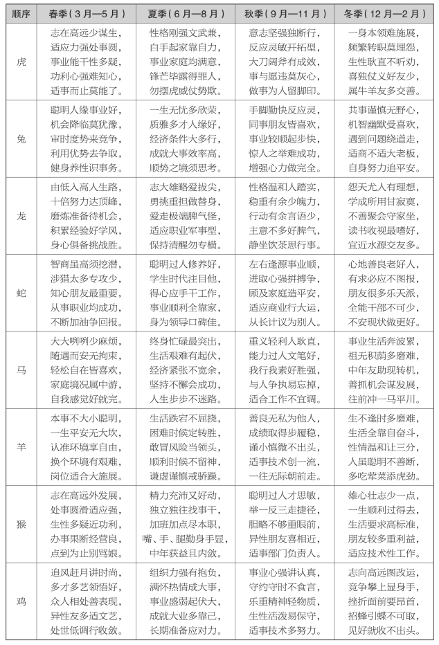 附:十二生肖与四季出生月份结合曲线图解一览表