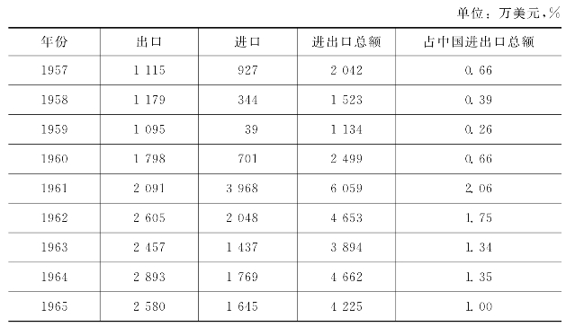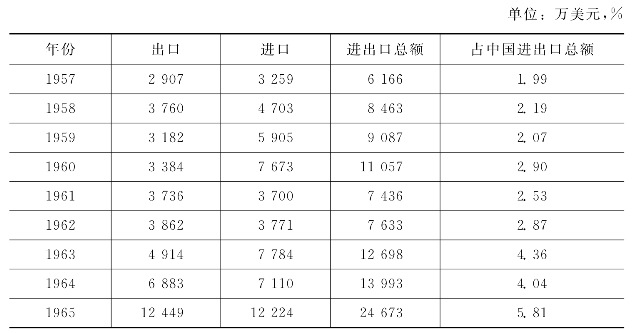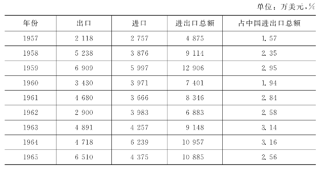 资料来源:对外贸易部外贸业务统计(1957—1965)