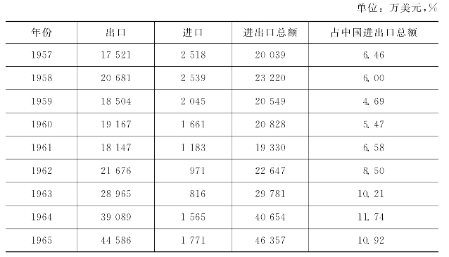 注:1957—1965年对香港出口数字中包括对澳门出口数字。