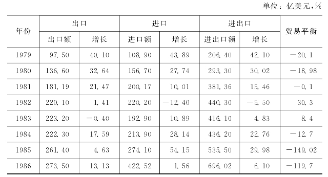 表4-2 1979—1986年我国对外贸易发展总体情况