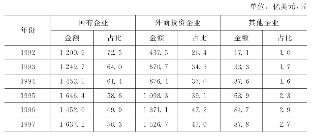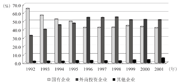 20世纪90年代,随着我国外贸经营权的不断放开,我国对外贸易主体发生了重大变化,逐渐由国有企业为主导转变为以外商投资企业为主导。