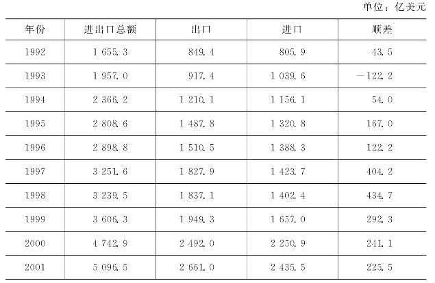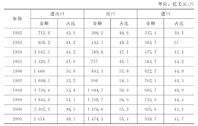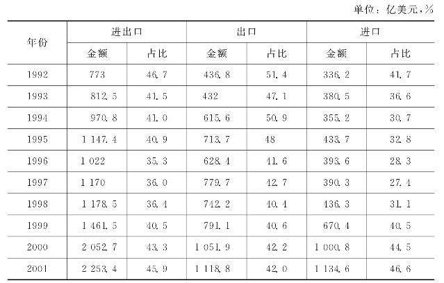 资料来源:《2001年中国对外经济贸易年鉴》《1993—2001年海关统计年鉴》