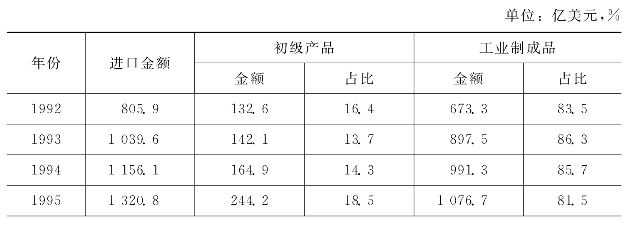 20世纪90年代以来,我国商品进出口结构呈现出从粗加工、低附加值产品为主逐渐向以精加工、高附加值产品为主的转变。