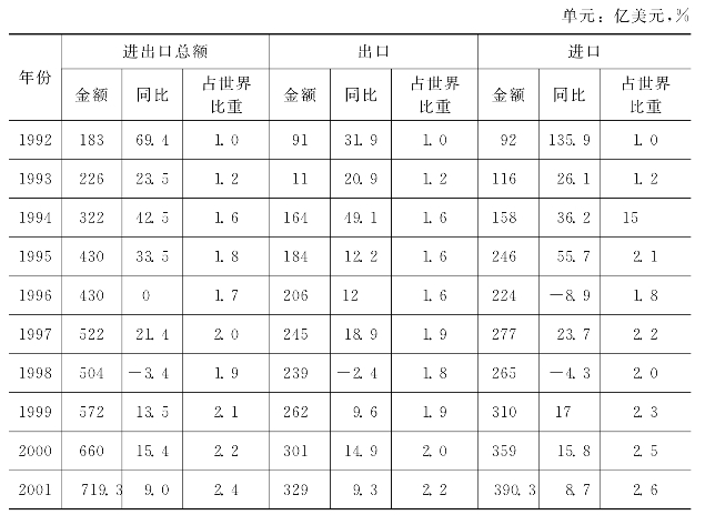 表6-3 1992—2001年我国对外贸易在国内生产总值中的比重