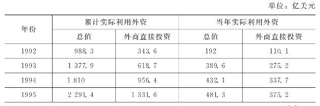1992年春,邓小平在南方谈话中明确指出:“多搞点‘三资’企业,不要怕。只要我们头脑清醒,就不怕。我们有优势,有国营大中型企业,有乡镇企业,更重要的是政权在我们手里。……因此,‘三资’企业受到我国整个政治、经济条件的制约,是社会主义的有益补充,归根到底是有利于社会主义的。”[6]邓小平南方谈话明确了大胆利用外资是一项全新的事业,为我国进一步利用外资指引了方向。党的十四大报告再次强调,必须大胆吸收和借鉴世界各国包括资本主义发达国家的一切反映现代社会化生产和商品经济一般规律的先进经营方式和管理方法。