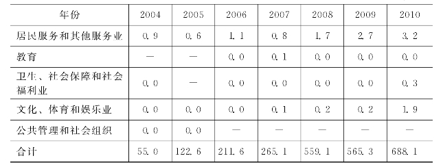 表7-25 中国对外直接投资流量行业分布(2004—2010年)