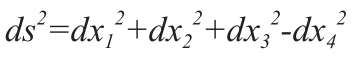 [46]闵科夫斯基空间,是指狭义相对论中由一个时间维和三个空间维组成的时空。这个空间是一个平坦空间,即假设没有重力、曲率为零的空间。但是,闵可夫斯基空间不同于牛顿的平坦空间。