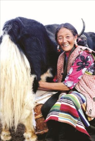 竖拍的好处在于将主题左右杂乱的景物去掉,将主体人物安排在黄金分割线上,以人物脸部测光曝光。在牧民举目微笑的一瞬间,抓拍那纯真、质朴、原汁原味的藏牧民形象,那种如牛奶般汩汩流出的满足感被相机留存下来。用光圈4.5,快门1/80秒,焦距62mm拍摄。