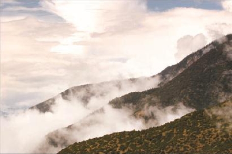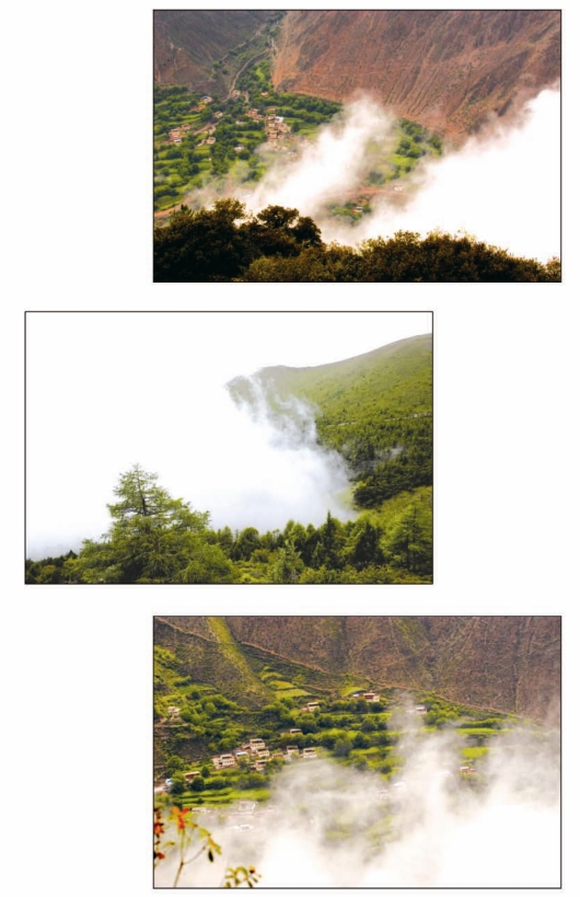 去白马雪山的路上,雾气浓重,开车行驶能见度不足十米。我们一直在白雾苍苍、云横雾锁中绕来绕去,刚绕出这块区域,居然遇到了雾头,哗的瞬间,雾头就往另一边奔去,能亲眼目睹雾头的游动着实过瘾!往常都只是远远看到雾,从山谷中、从山背后慢慢地升腾,只道是“雾起了”。这下见到雾头,煞是惊奇!
