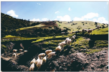 对于那些明暗反差强烈又有规律构成的场景,一定不要放过。这幅是以竖拍的方式取景,目的是摄取局部,舍弃左右杂景。画面中有三个对比,其一,有规律的层层青稞田环绕在白色藏民村庄的周围,形成鲜明的明暗对比;其二,画面的上半暗与下半亮形成暗与明的对比,突出了主体部位;其三,画面上半部分的岩石山与下半部分的绿色青稞形成了壮与秀的对比。以最前面的白色房屋测光曝光。用光圈9,快门1/164秒,焦距102mm拍摄。