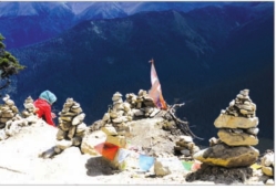 为了能拍到雪峰,我们等了一个多小时。卡格博峰是藏传佛教的朝觐圣地,路边有很多哈达与经幡,堆积的玛尼堆,叠放着人们对自然与宗教的虔诚。