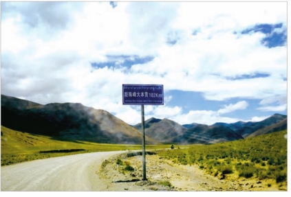 下午1点52分来到通往珠峰的最后102公里衔接处,下318国道。从这里开始路就不好走了,一看就是泥沙搓板路。司机说,艰难的时候到了,你们要做好思想准备哟。果真,几百米的路程,我们感觉五脏六腑都要颠出来了。车速很慢,不超过25码。