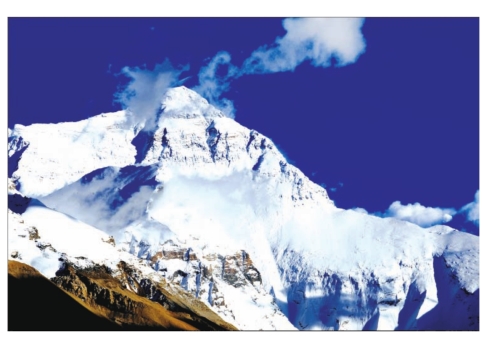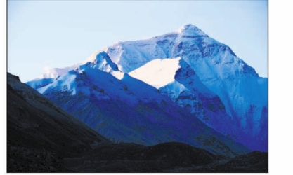 摄影常识中有一句专业俗语——“白加黑减”,意思是,当拍摄的主体是白色时,要在原有曝光量的基础上增加1挡到1.5挡的曝光量;当拍摄的主体是黑色时,要在原有曝光量的基础上减少1挡到1.5挡的曝光量,这样才能对其曝光正确。这幅白雪皑皑、巍峨壮丽的珠峰就是在原有测光(f/18,1/320秒)的基础上增加了1挡曝光量即f/18,1/160秒拍下的。如果不增加曝光量,拍出的效果是白雪发灰,不那么洁白。