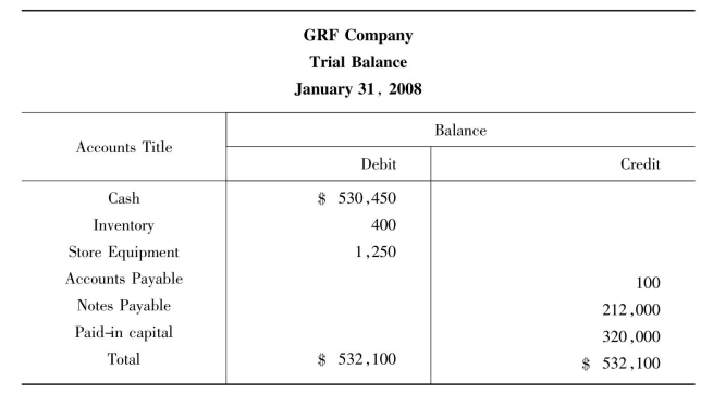 The summary of the transactions for GRF Company and their effect on the accounts is shown below in Table 3-4.The trial balance is then taken.
