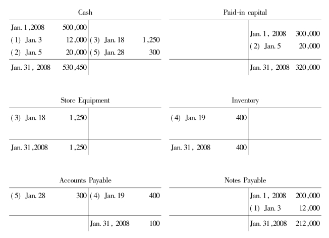 (c)Dollar signs are used in the amount areas of the ledger accounts.