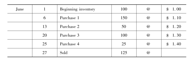 Purchases 500 units at$6.50,240 units at$5.90,370 units at$6.10,and 320 units at$6.00.