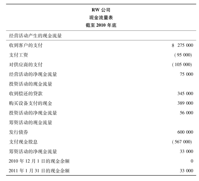 现金流量表的编制非常简单。首先,列出那些影响现金增加(即现金流入)和现金减少(即现金流出)的活动。其次,根据对上述活动的划分标准,将每一笔现金流入和流出分别填入相应的类别中。表10-6是WR公司的现金流量表。
