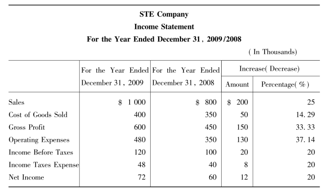 The STE Company's income statement in Table 11-2 shows that sales increase of 25%,exceed the 14.29%increase in cost of goods sold,causing a 33.33% increase in gross profit.That's good news.But operating expenses also increased by 37.14%.In total,the 25%increase in sales led to 20%increases in net income.