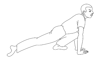 ④全身后收,臀部突起,两肘挺直,头昂起,向前运行,约离地2寸。此时两肘弯曲,右足尖着地,全身向前,然后臀部突出,成波浪形往返动作,势如卧虎扑食。